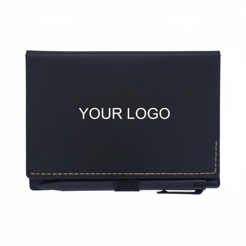 - Vinyl exterior, paper (notebook), plastic (pen)