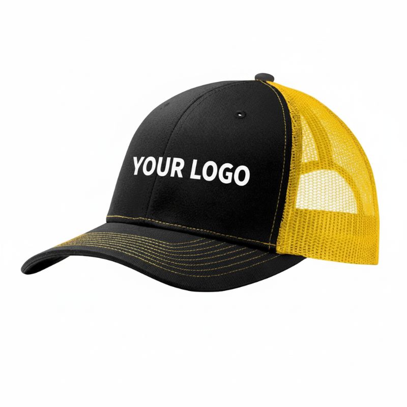 - 100% cotton twill (front panels and bill), 100% polyester mesh (mid and back panels)