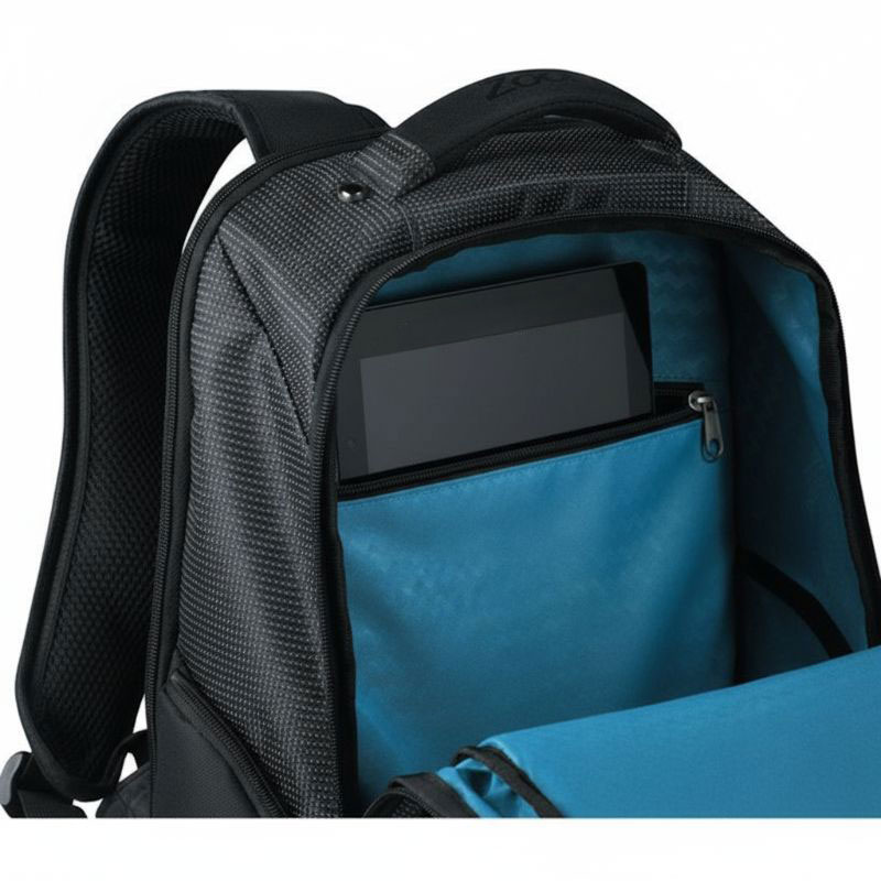 - Open main compartment includes a dedicated zippered padded iPad pocket